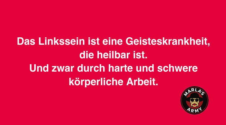 Das Linkssein ist eine Geisteskrankheit, die heilbar ist. Und zwar durch harte und schwere körperliche Arbeit.