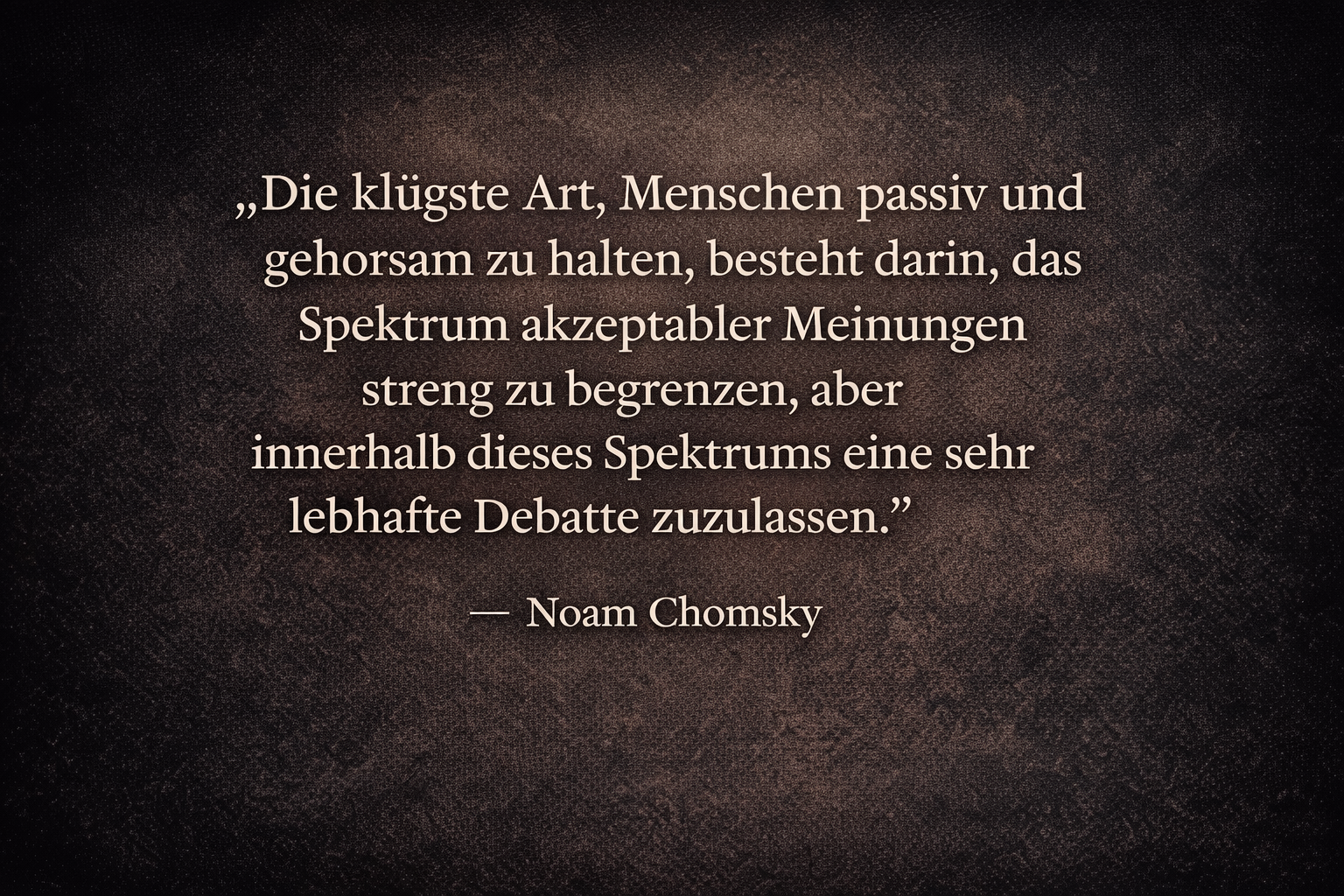 „Die klügste Art, Menschen passiv und gehorsam zu halten, besteht darin, das Spektrum akzeptabler Meinungen streng zu begrenzen, aber innerhalb dieses Spektrums eine sehr lebhafte Debatte zuzulassen.“